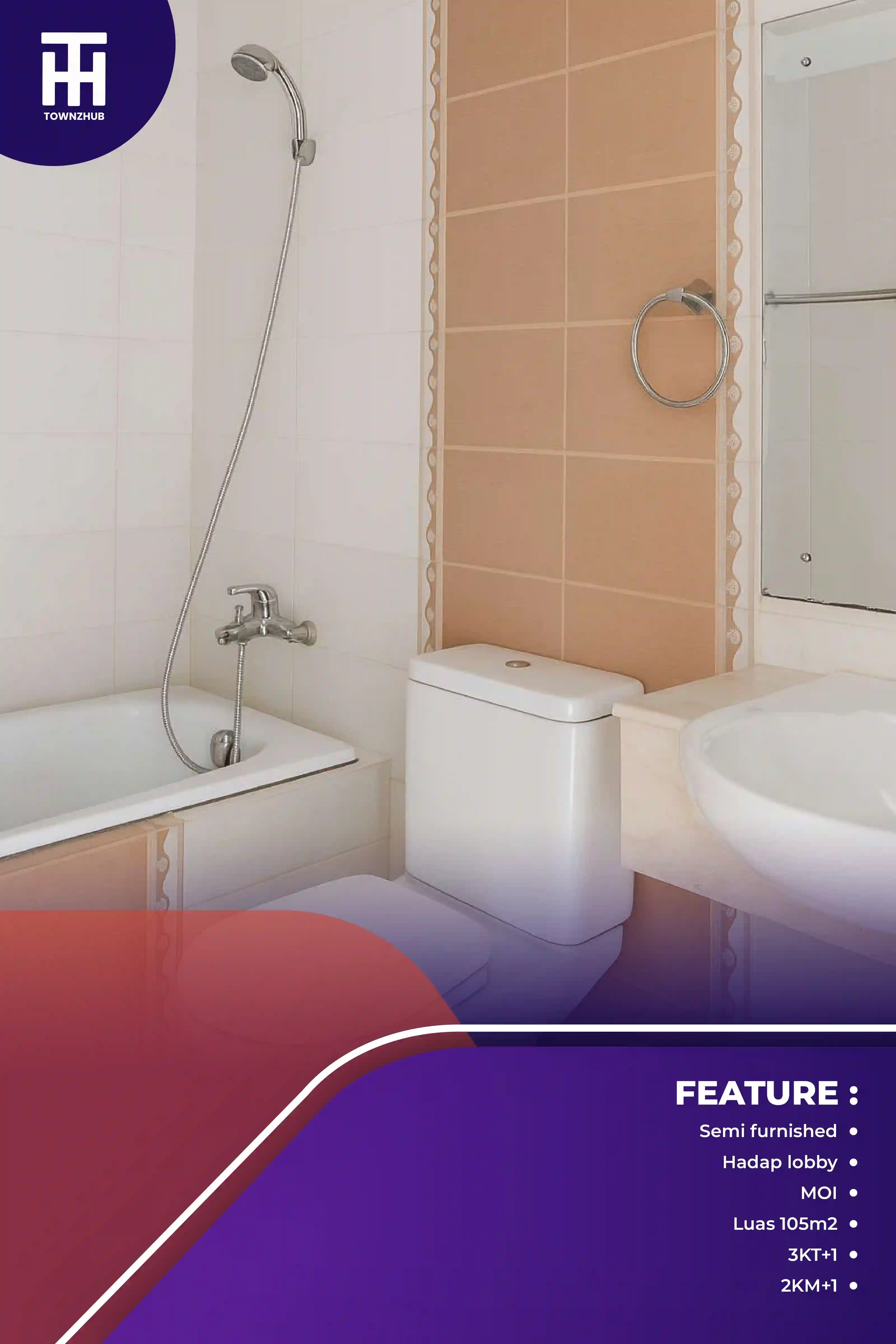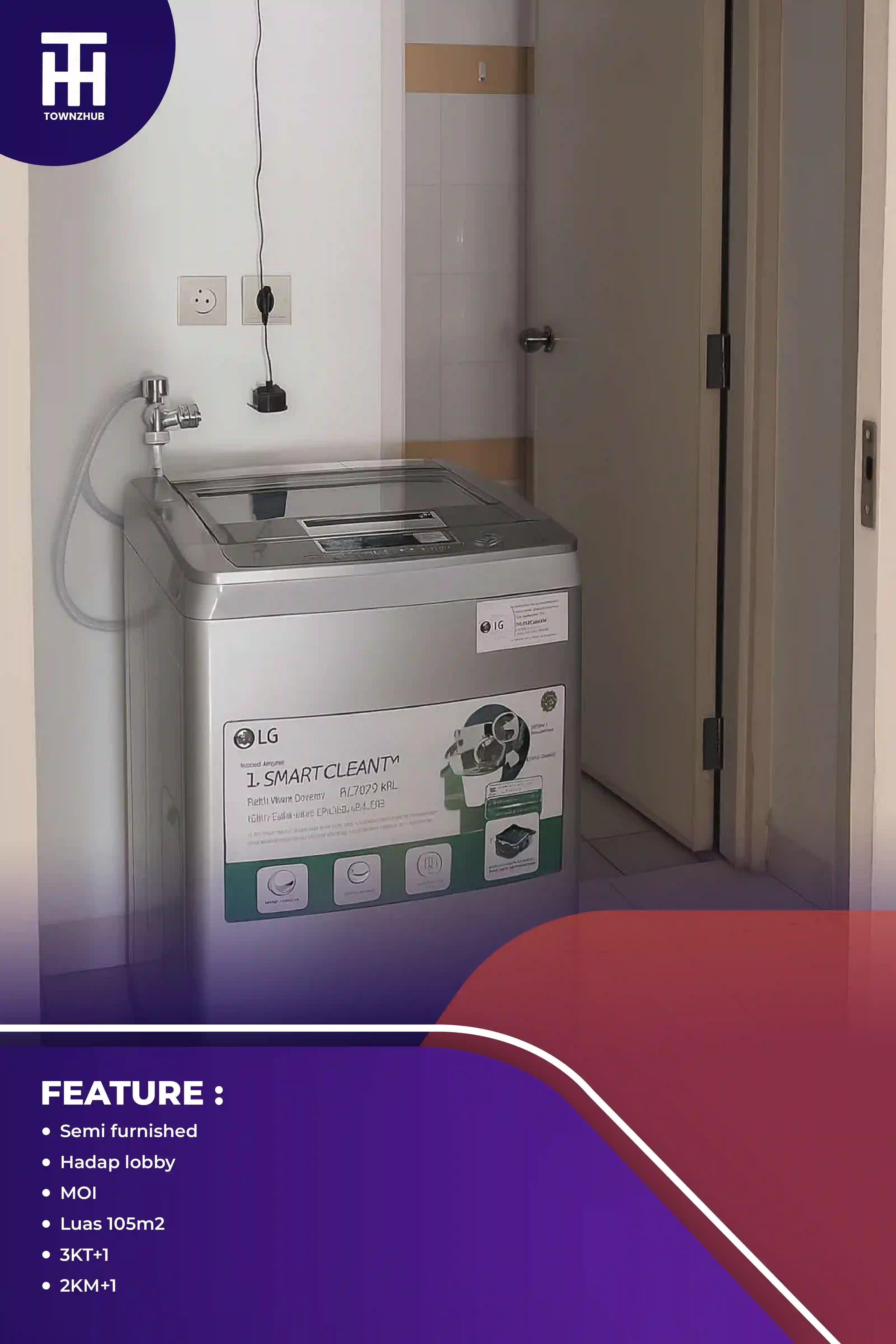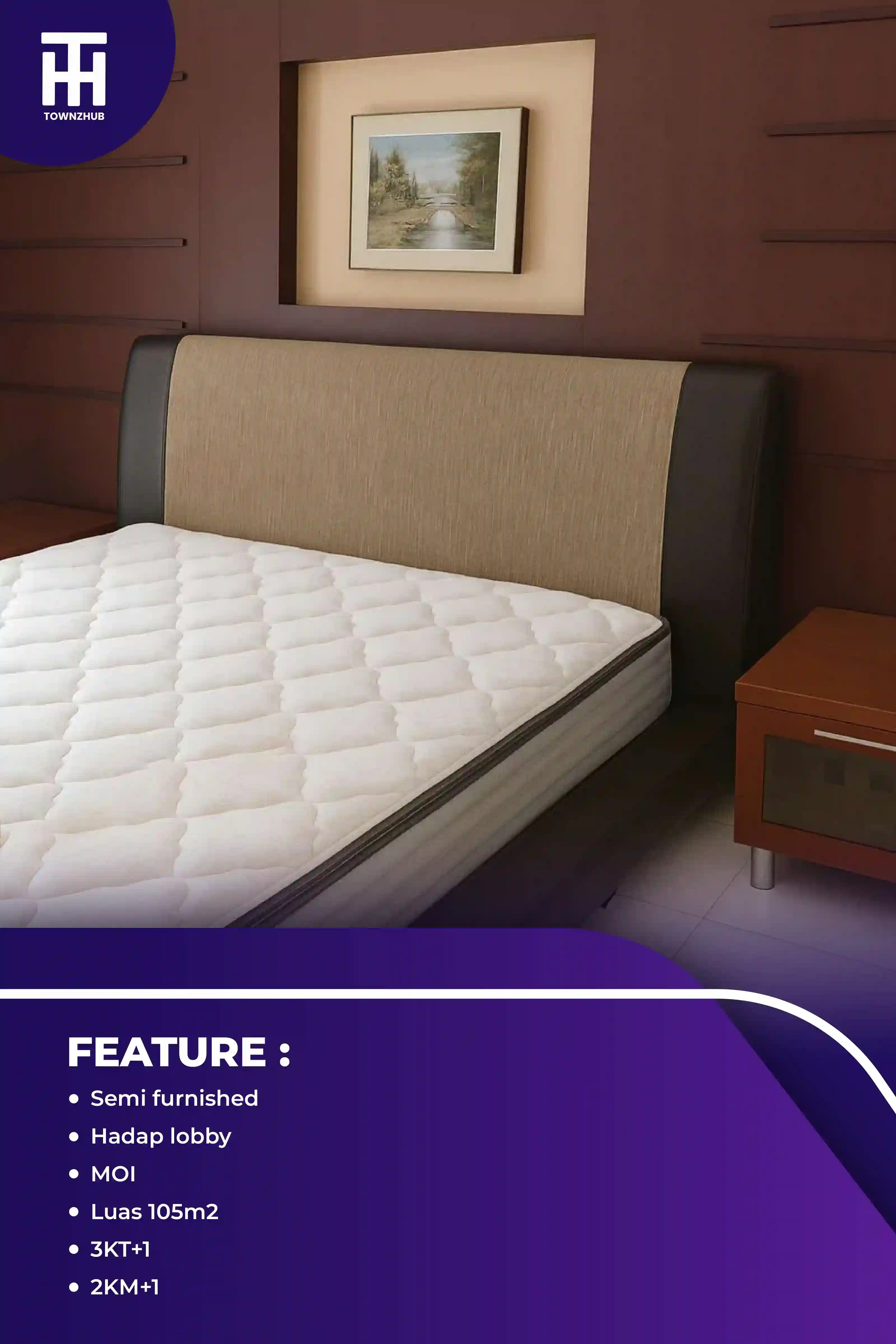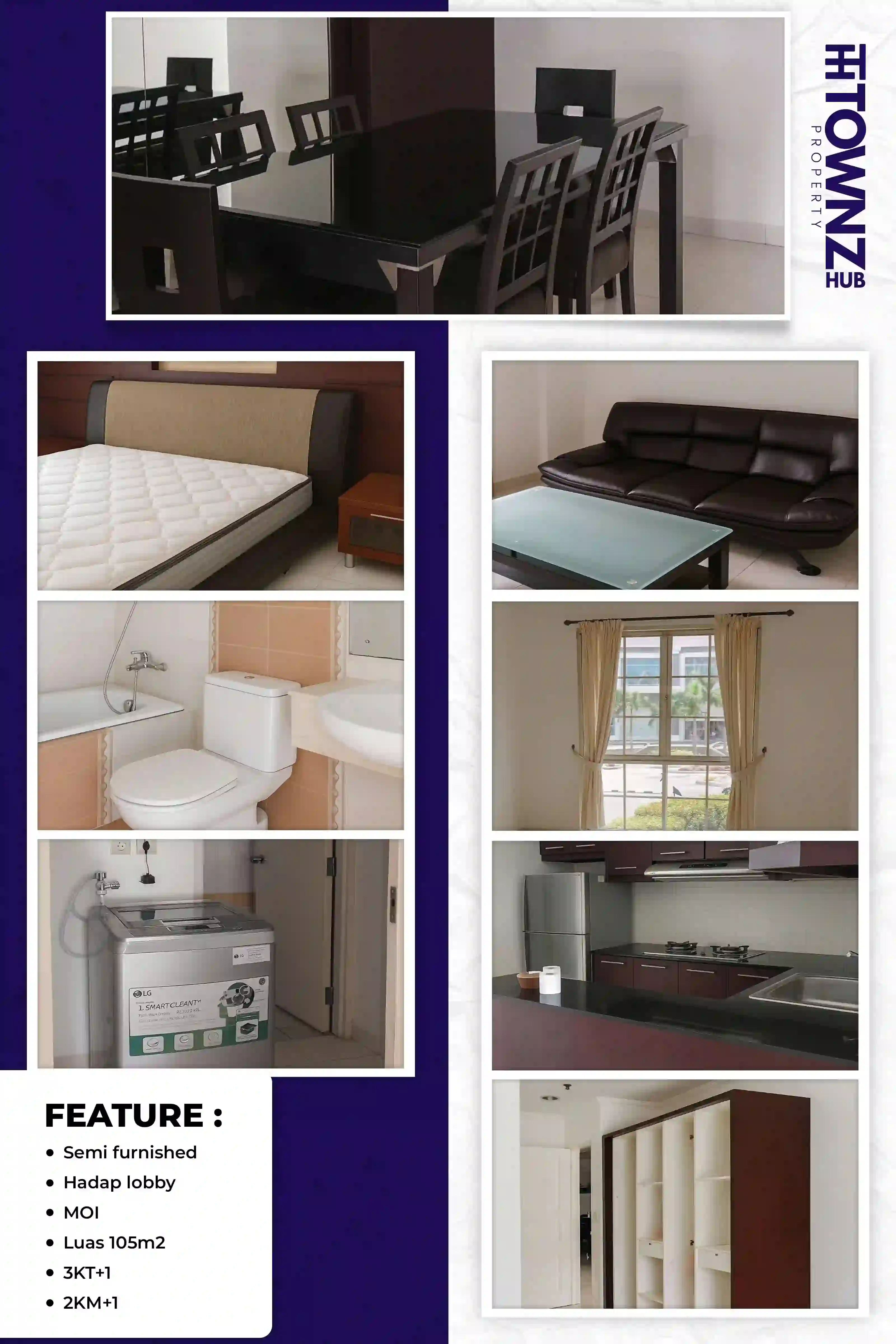 Apartemen City Home MOI – 3BR (105 m²) – Semi Furnished – Hadap Lobby Unit apartemen luas 105 m²...